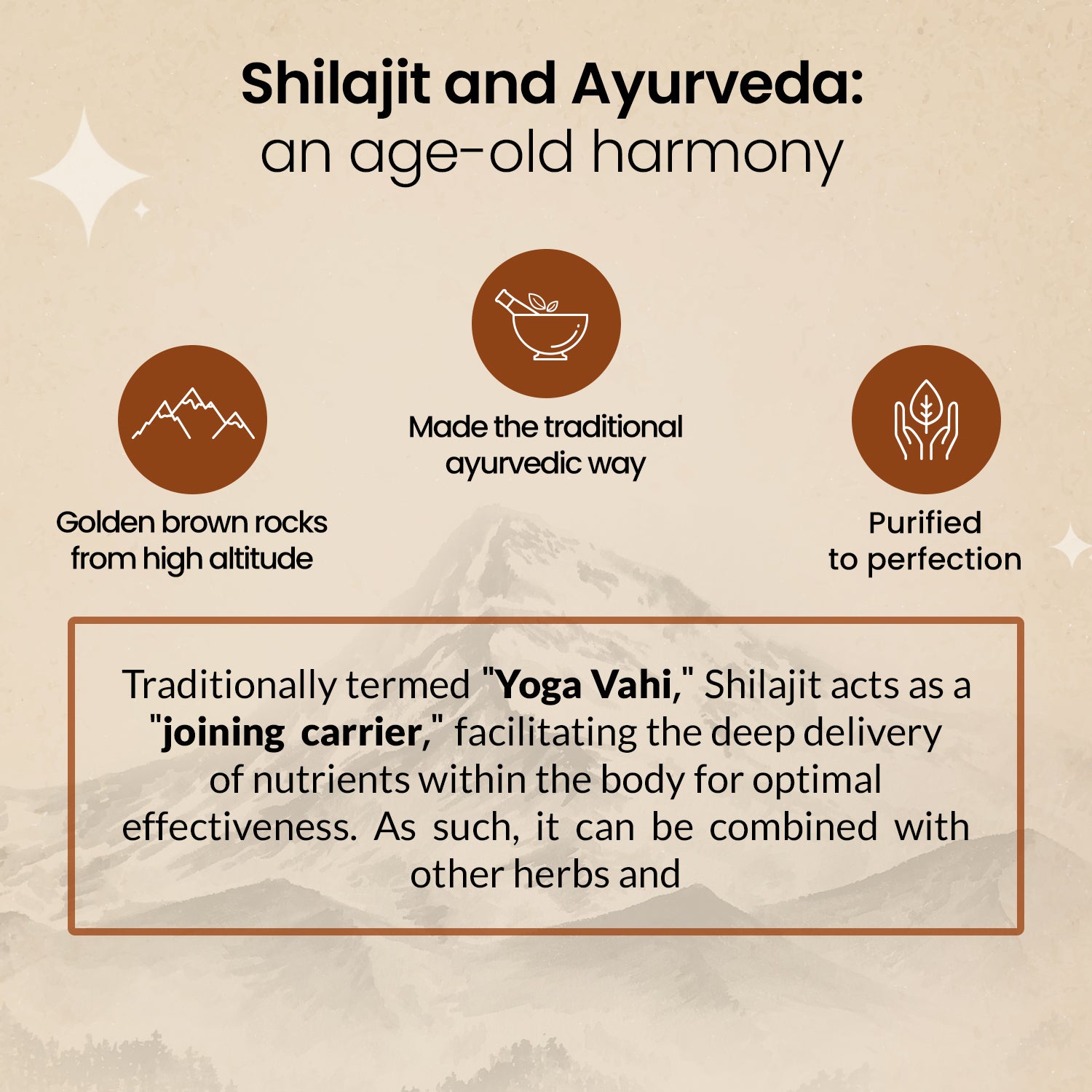 Known as "joining carrier," shilajit enhances nutrient absorption, making it ideal for synergistic use with other herbs