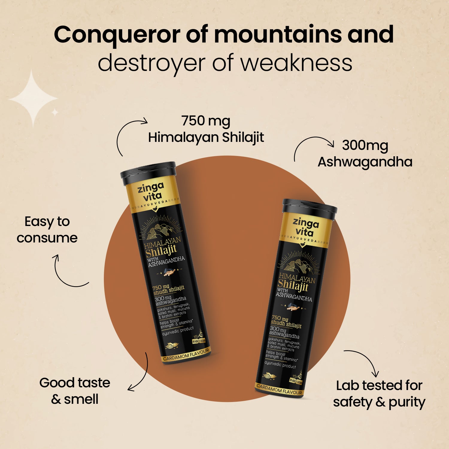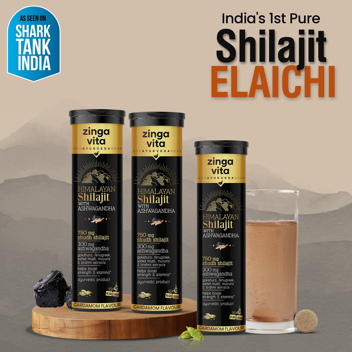 Himalayan Shilajit with Ashwagandha effervescent tablets by Zingavita come in a delicious cardamom flavour. These tablets have a combination of Ayurvedic extracts like Gokshura, Fenugreek, Safed Musli, and Brahmi, known for their potential to boost strength and stamina. It also supports physical performance and reduces stress and anxiety. That’s not all, these effervescent tablets have no bad smell or taste of Shilajit.
